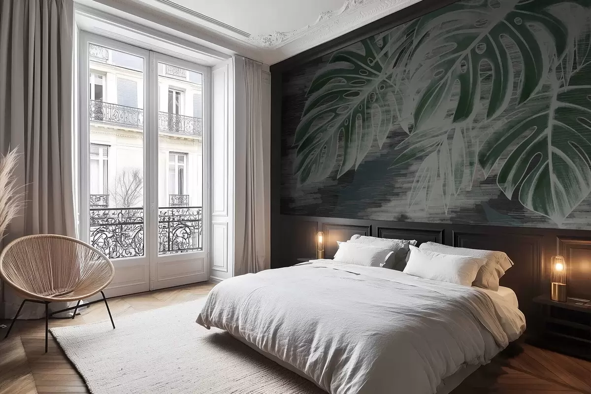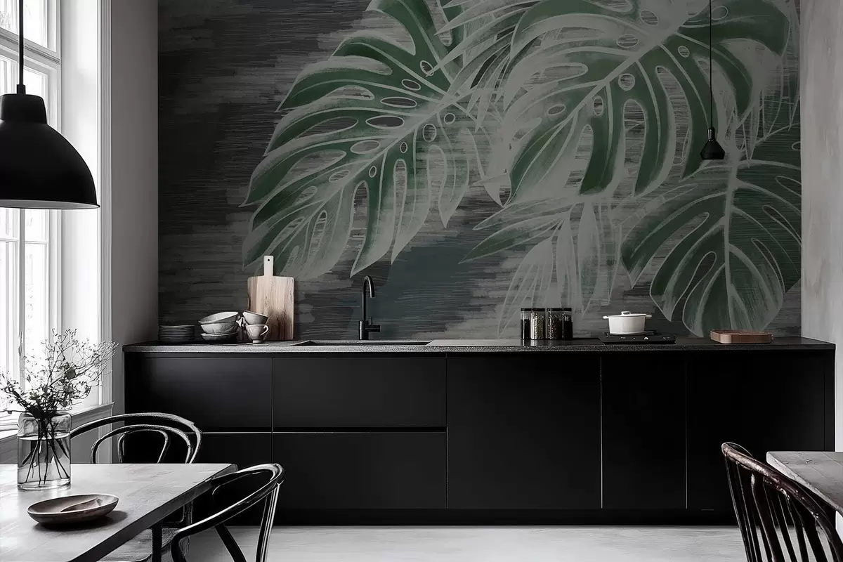 Fototapetes Tumši zaļas lapas uz teksturēta tumša fona Nr. w05130v4