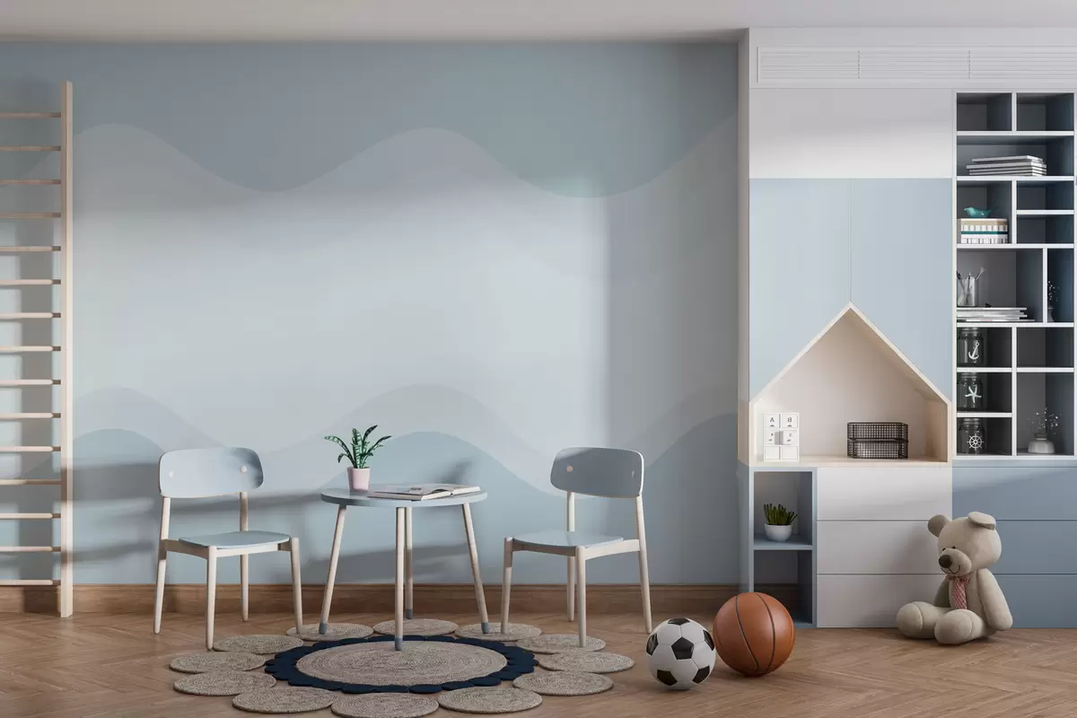 Fototapetes Abstraktas viļņi gaiši zilas krāsas paletē Nr. w05132v2