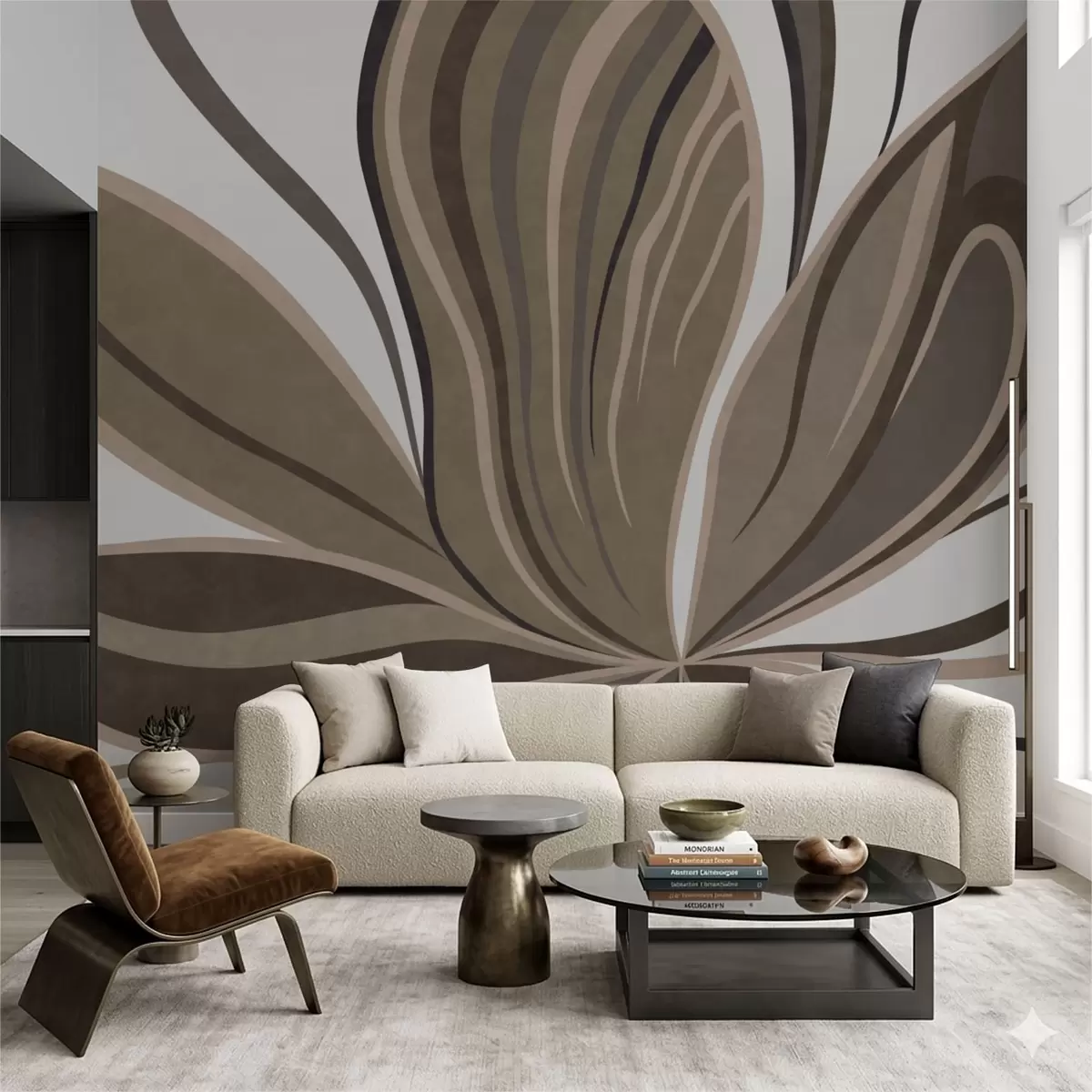 Fototapetes Stilizēts zieds ar plūstošām līnijām brūnos toņos Nr. w05147