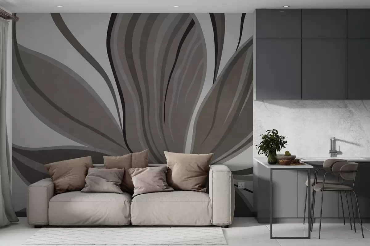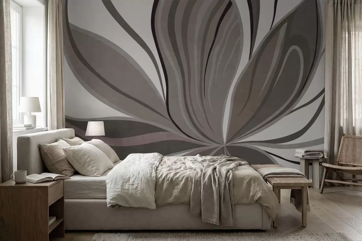 Fototapetes Abstrakta zieda attēls ar maigām līnijām pelēkbrūnos toņos Nr. w05147v1