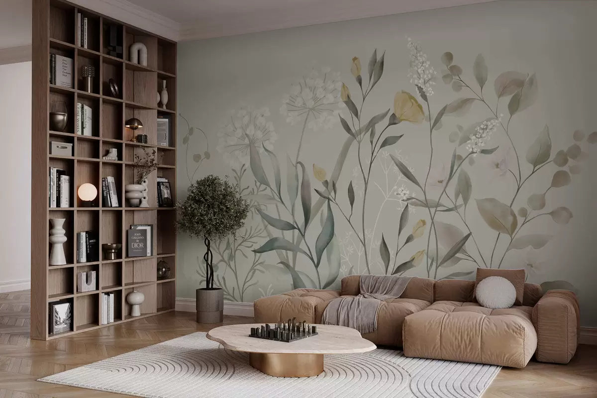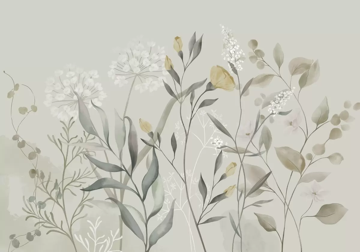 Fototapetes Augi ar dzelteniem akcentiem uz gaiša fona Nr. w05154v1