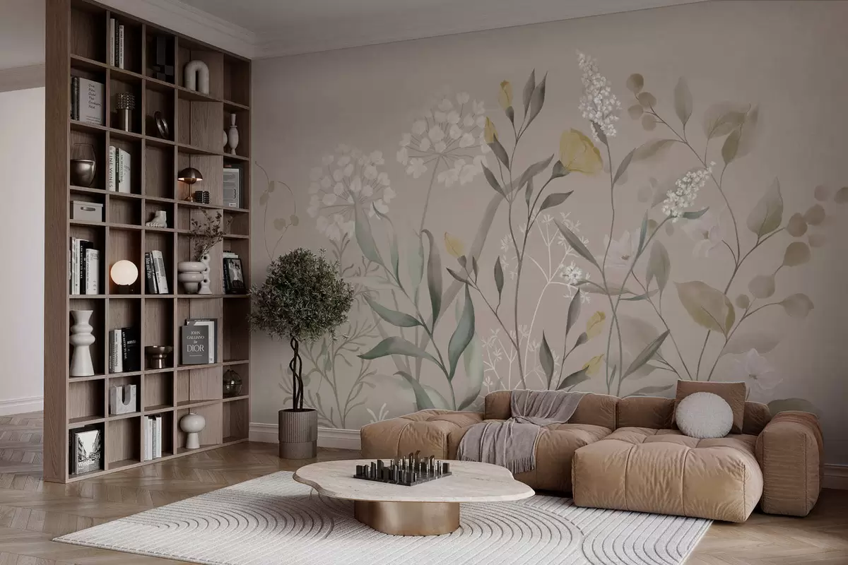 Fototapetes Botāniskais sastāvs siltos smilškrāsas toņos Nr. w05154v2