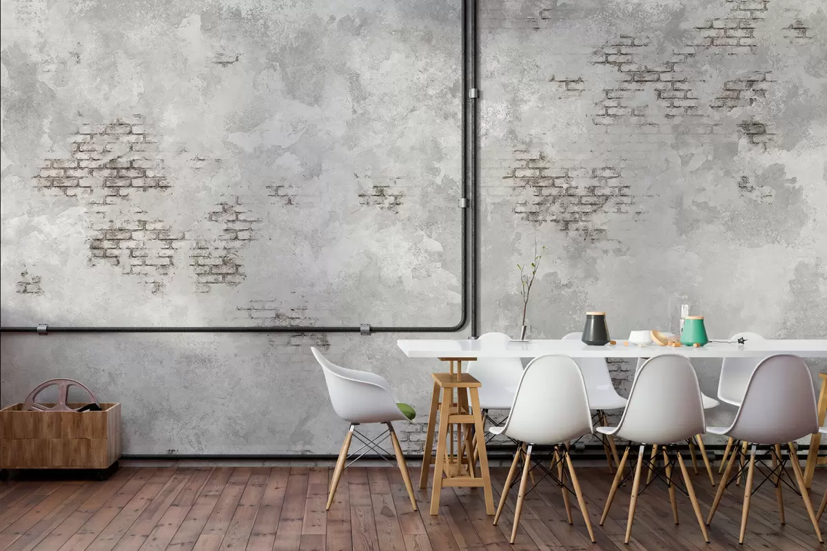 Fototapetes Grunge stila apmetuma faktūra ar redzamiem ķieģeļu fragmentiem Nr. w05161