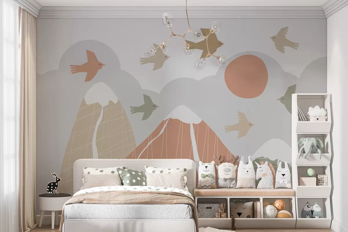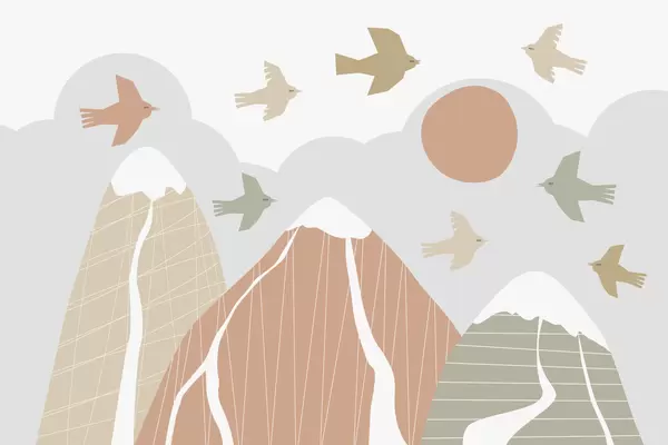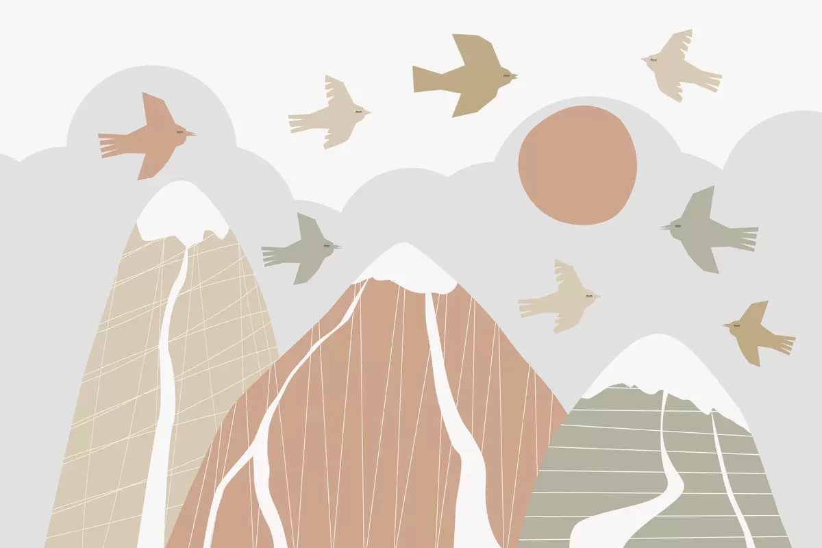 Fototapetes Skandināvijas kalni un putni Nr. w05166