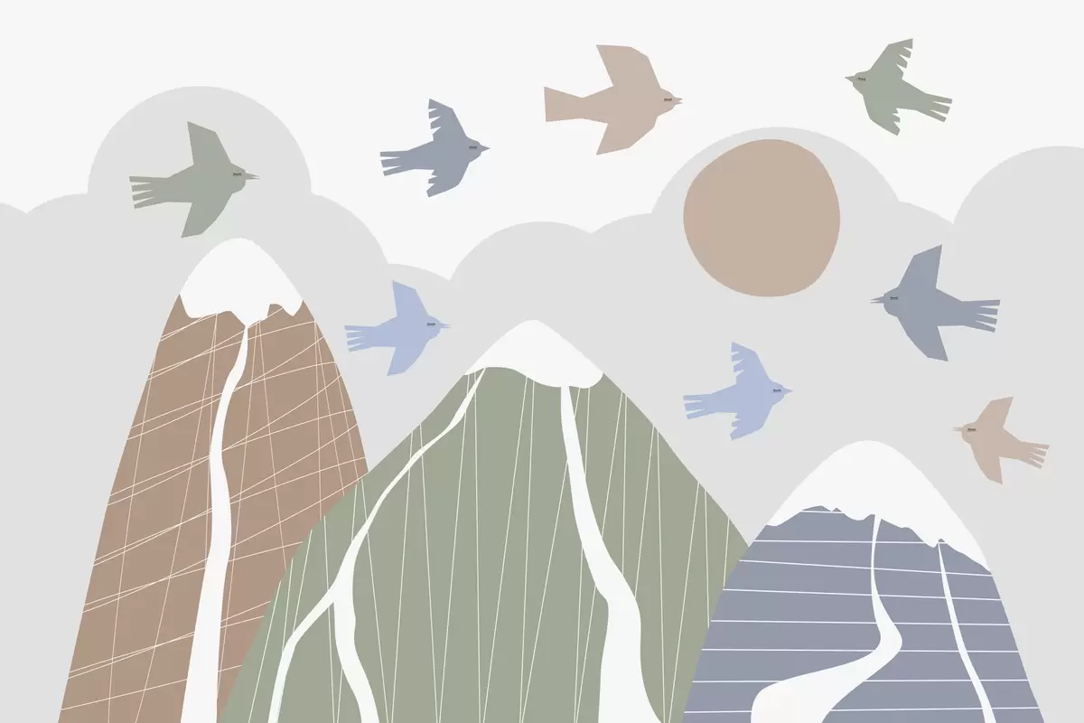 Fototapetes Skandināvijas kalni un putni Nr. w05166v1