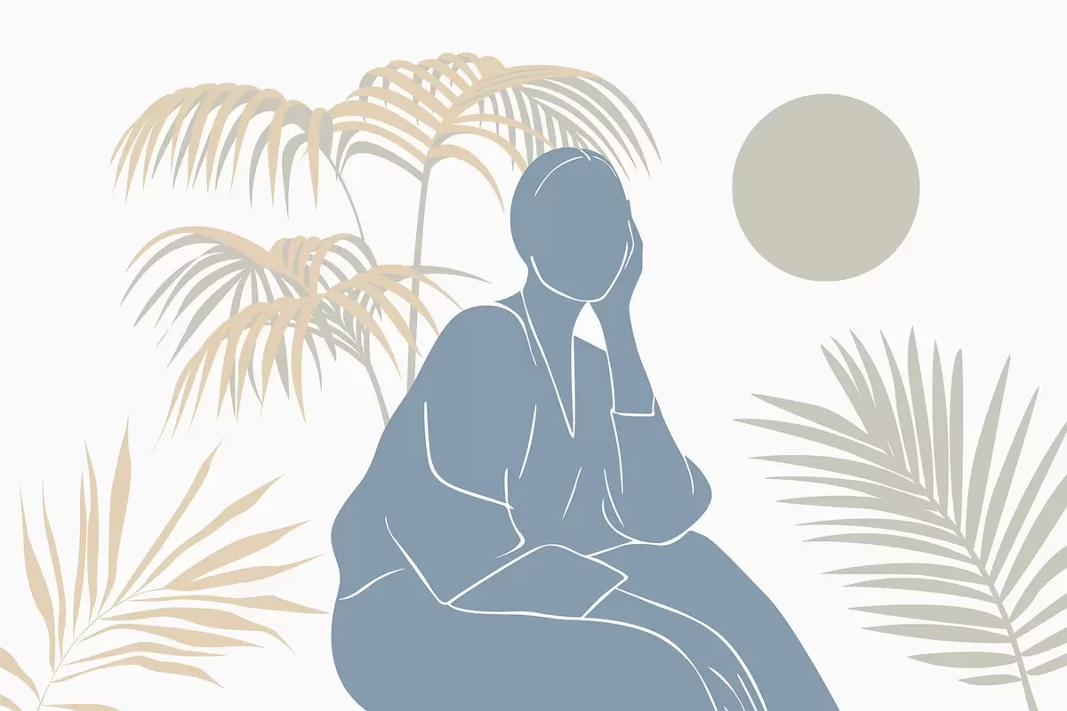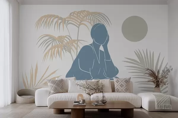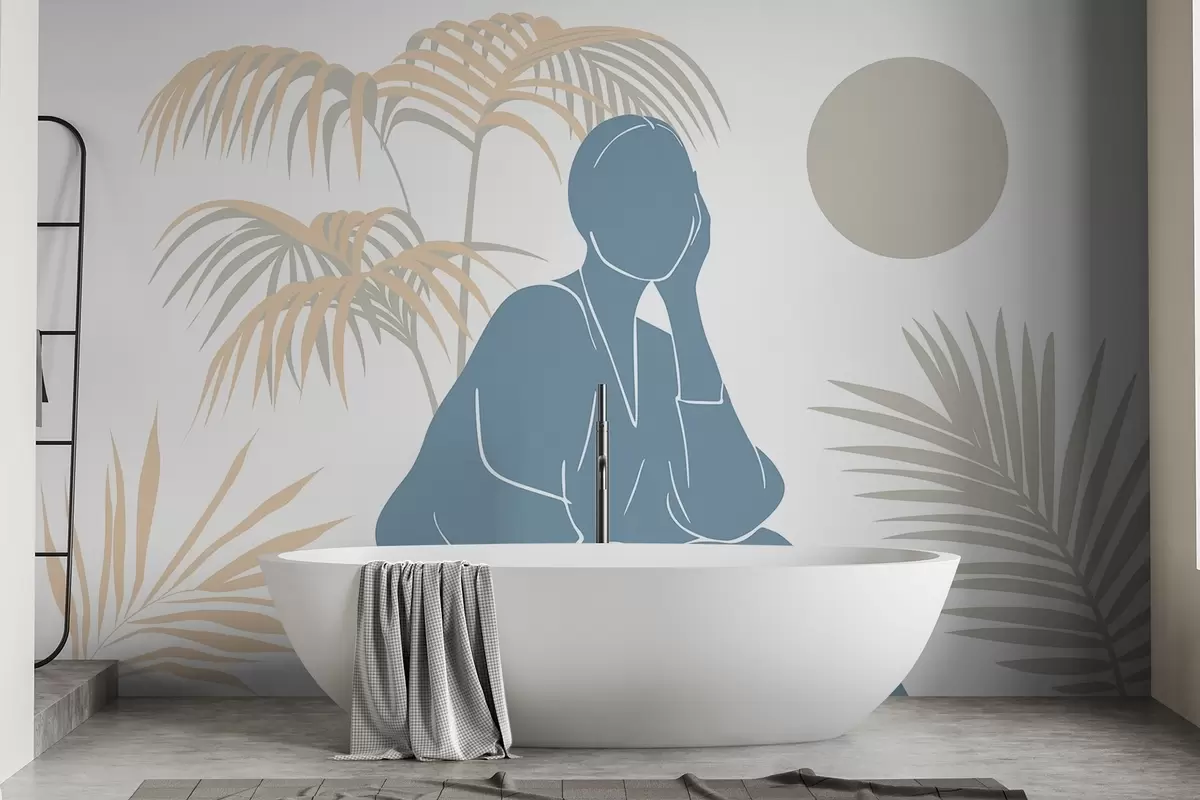 Fototapetes Sievietes siluets un palmu lapas Nr. w05190v1