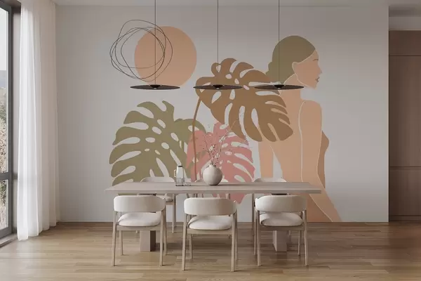 Fototapetes Sievietes siluets pie tropu lapām Nr. w05192v1