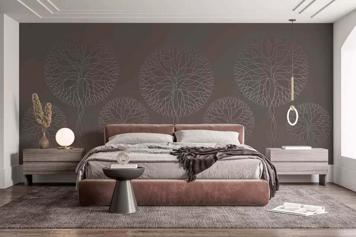 Fototapetes Fantastiski lineāri koki ar sulīgām vainagām elegantiem mokas toņos Nr. w05213v1
