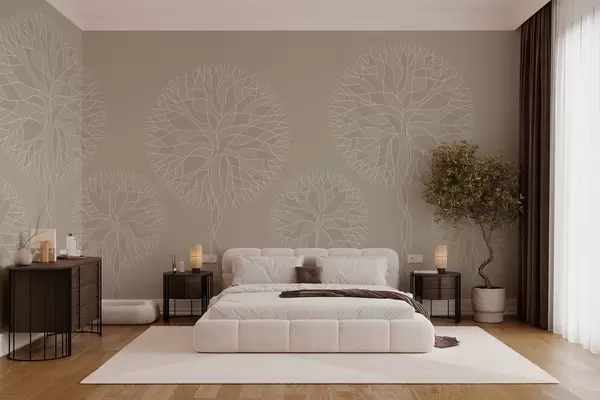 Fototapetes Fantāzijas lineāri koki ar sulīgām vainagām smilškrāsas toņos Nr. w05213v3