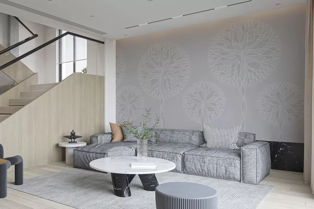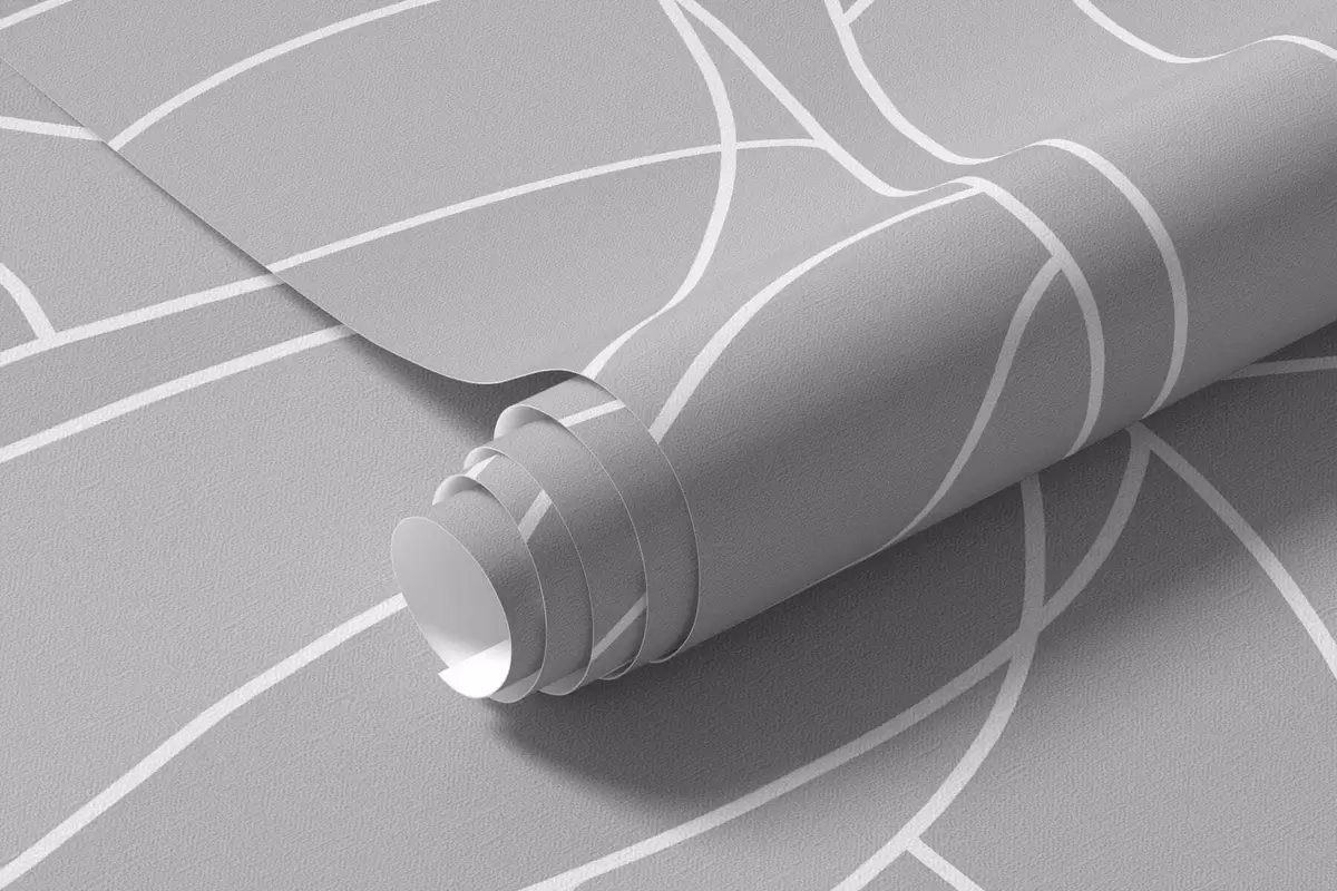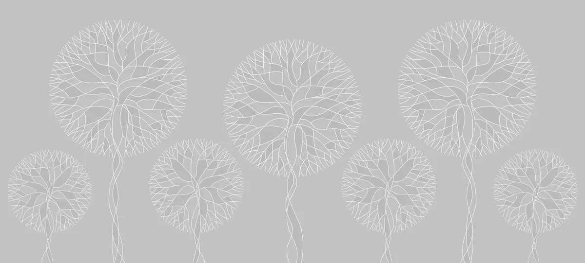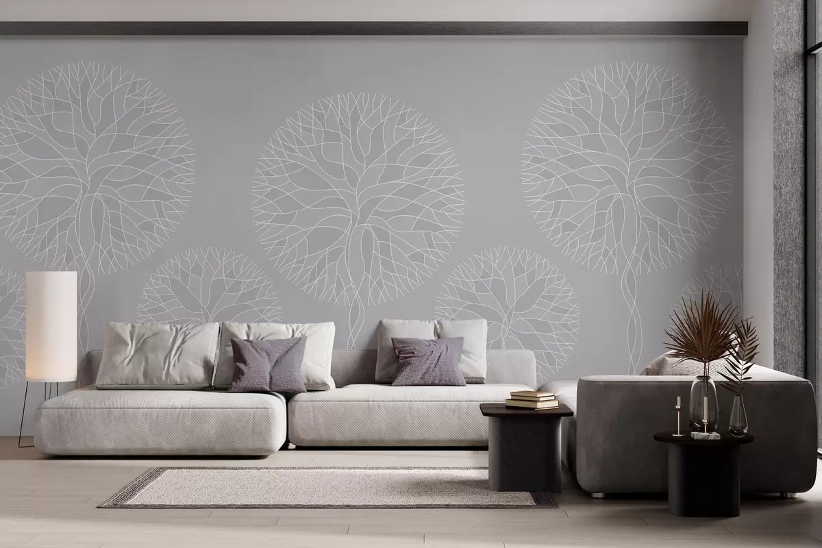 Fototapetes Fantāzijas lineāri koki ar sulīgām vainagām gaiši pelēkās toņos Nr. w05213v4