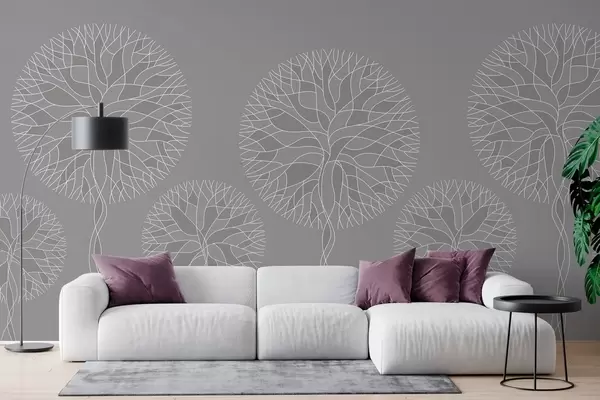 Fototapetes Fantāzijas lineāri koki ar sulīgām vainagām vidēji pelēkās toņos Nr. w05213v5