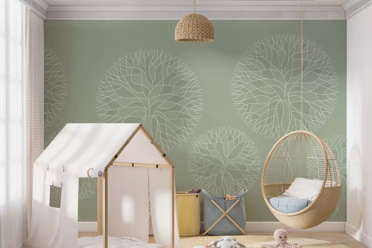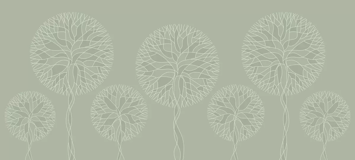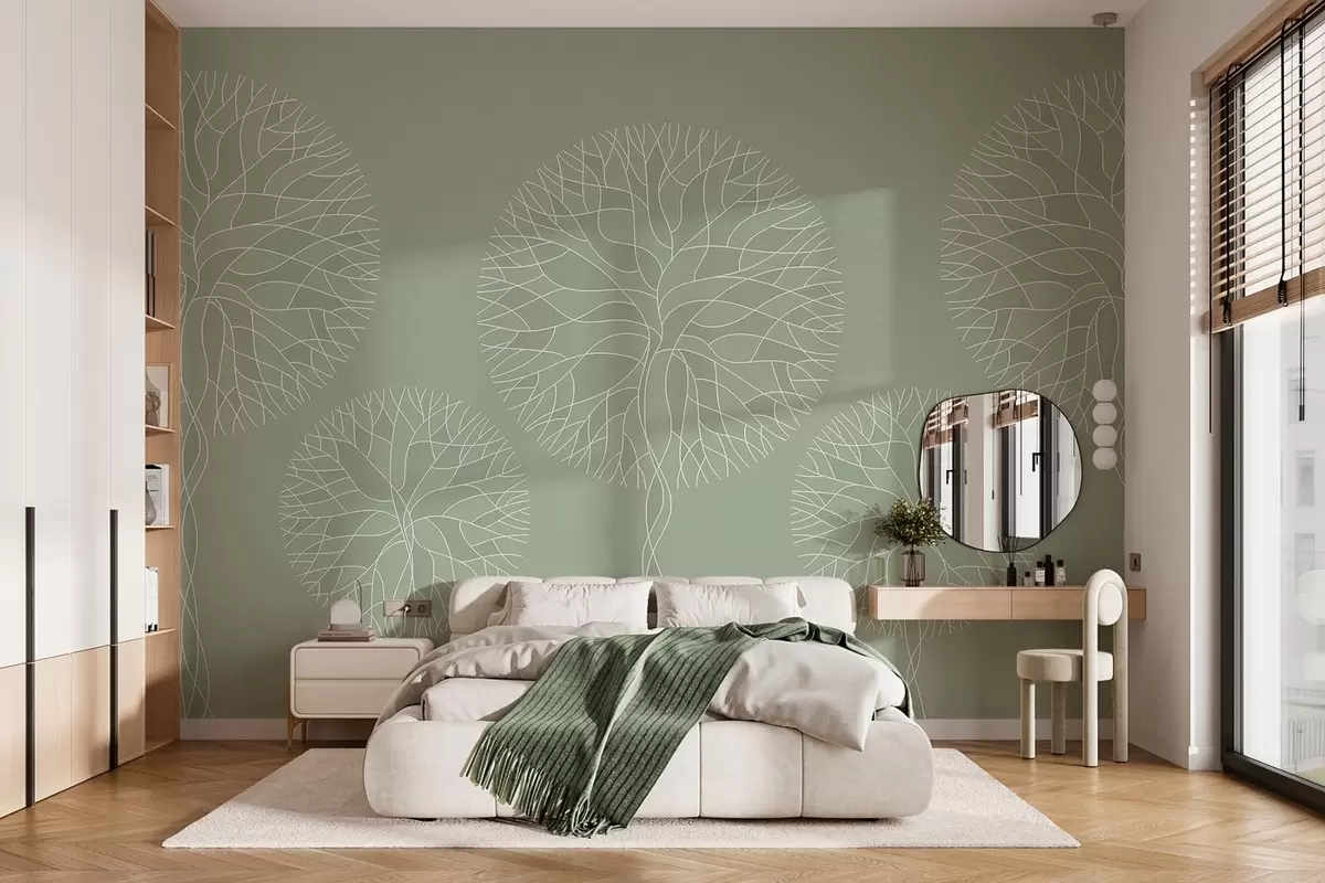 Fototapetes Fantāzijas lineāri koki ar sulīgām vainagām gaiši zaļos toņos Nr. w05213v6