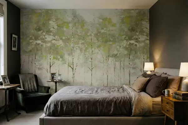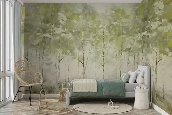Fototapetes Stilizēts mežs ar slaidiem kokiem zaļos toņos Nr. w05221v1