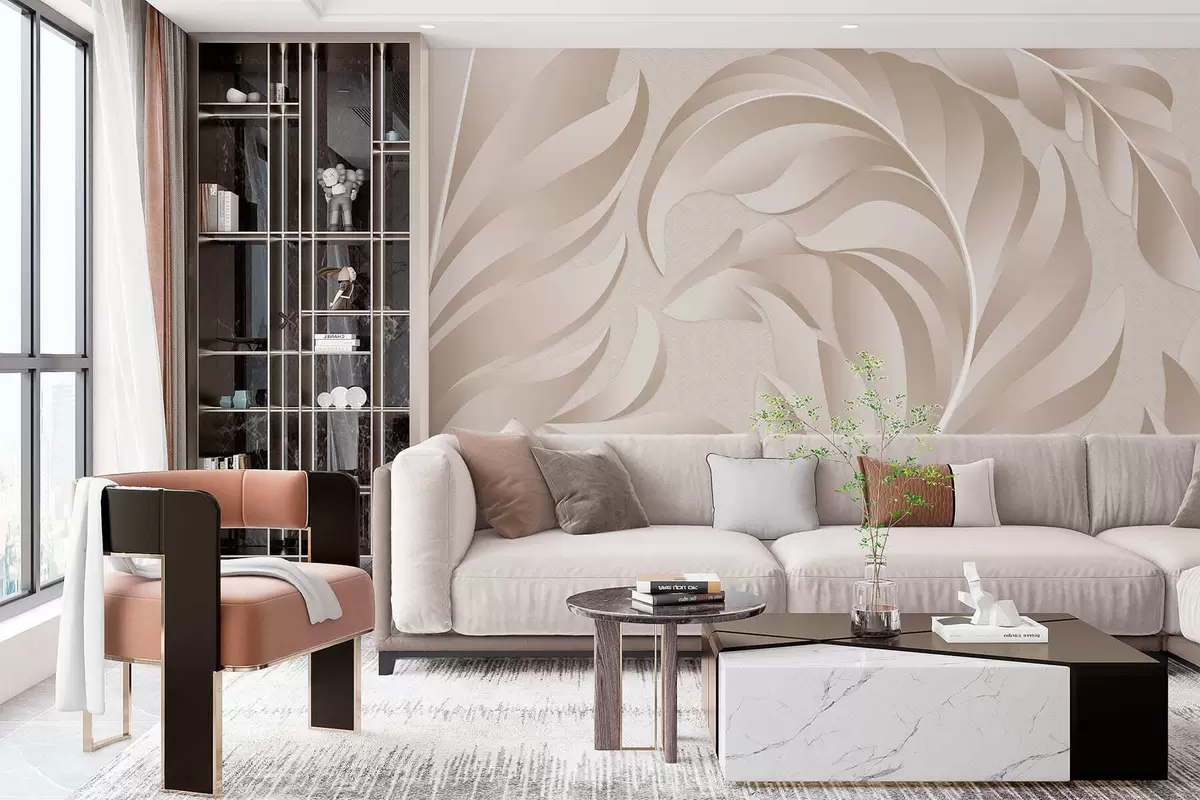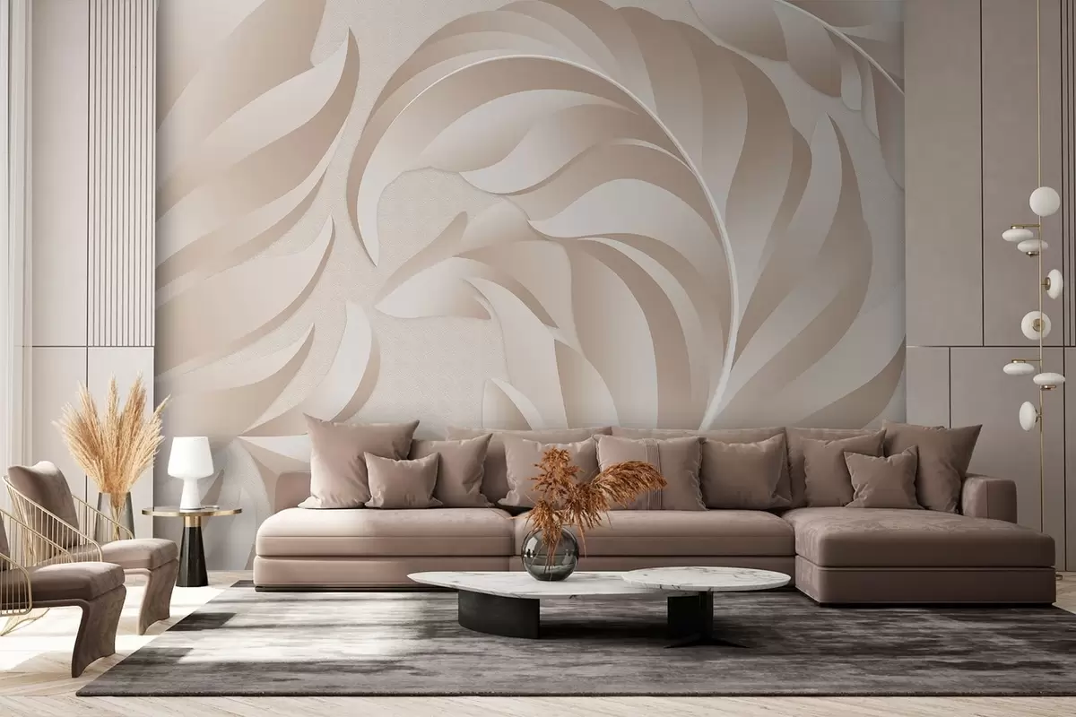 Fototapetes lieli teksturēti spalvas smilškrāsā un pūderkrāsā Nr. w05231