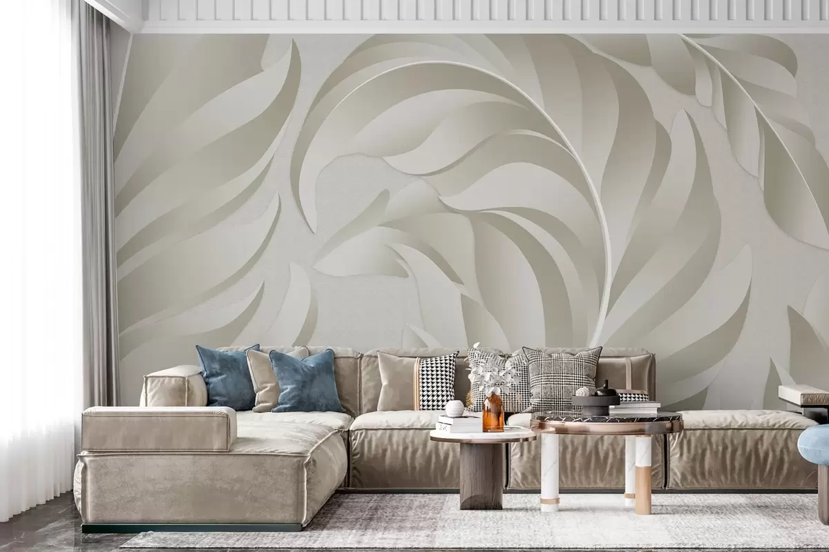 Fototapetes lieli teksturēti spalvas smilškrāsā un olīvu toņos Nr. w05231v1