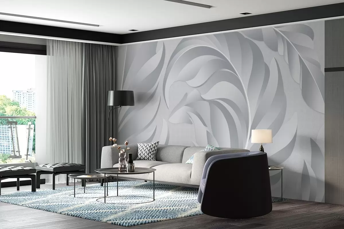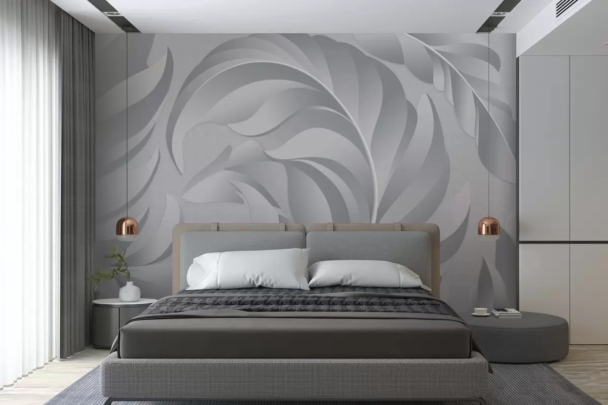 Fototapetes lieli teksturēti spalvas pelēkā krāsā Nr. w05231v3