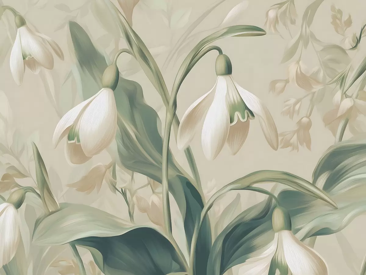 Fototapetes ziedošas sniegpulkstenītes uz smilškrāsas fona Nr. w05234