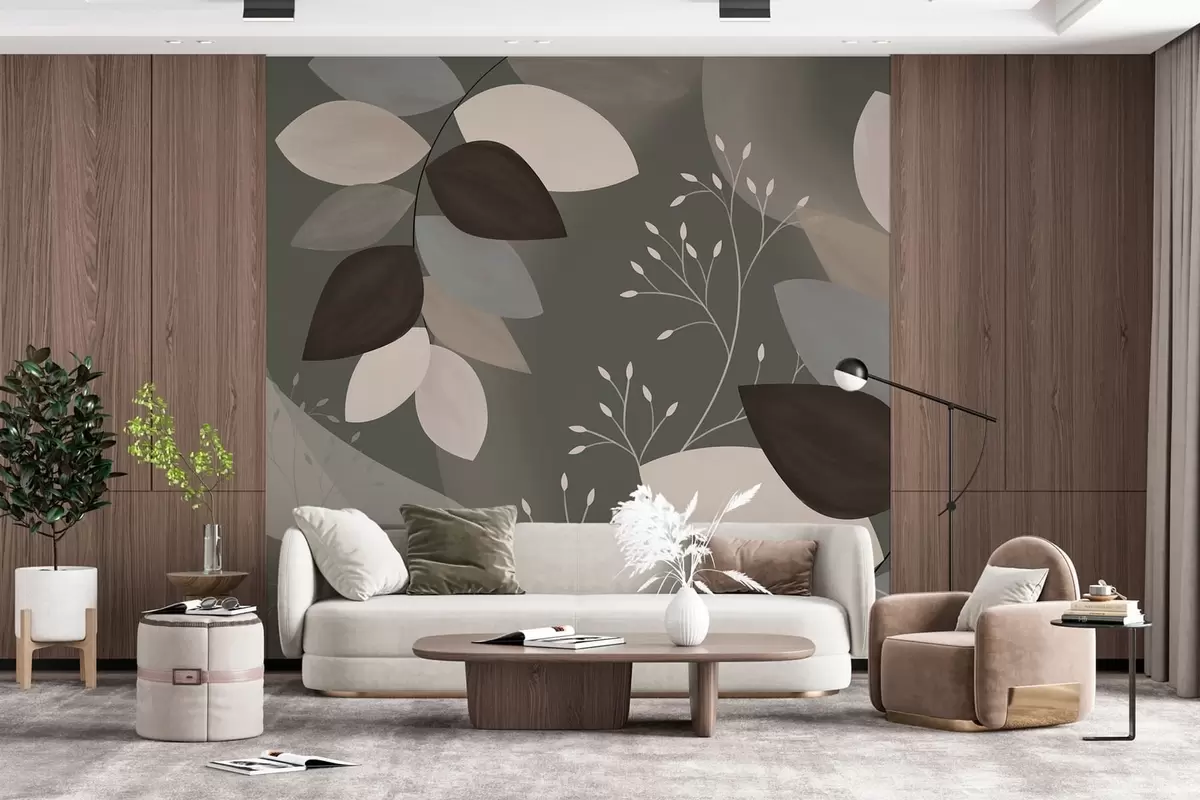 Fototapetes lapas un zāle tumšos toņos Nr. w05237v1