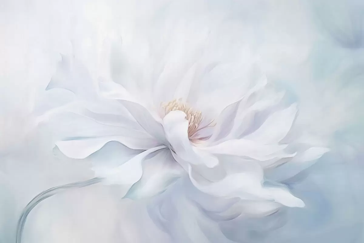 Fototapetes Mīksts balts zieds ar plūstošiem ziedlapiņām uz zila fona Nr. w05354