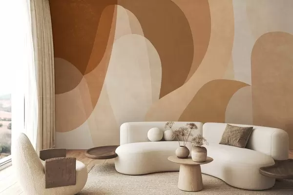 Fototapetes abstrakcijas līknes brūnos, smilškrāsas un sarkanbrūnos toņos Nr. w05387