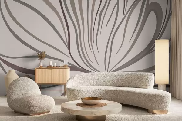 Fototapetes Abstrakta zieda attēls ar līnijām pelēkos un rozā toņos Nr. w05392