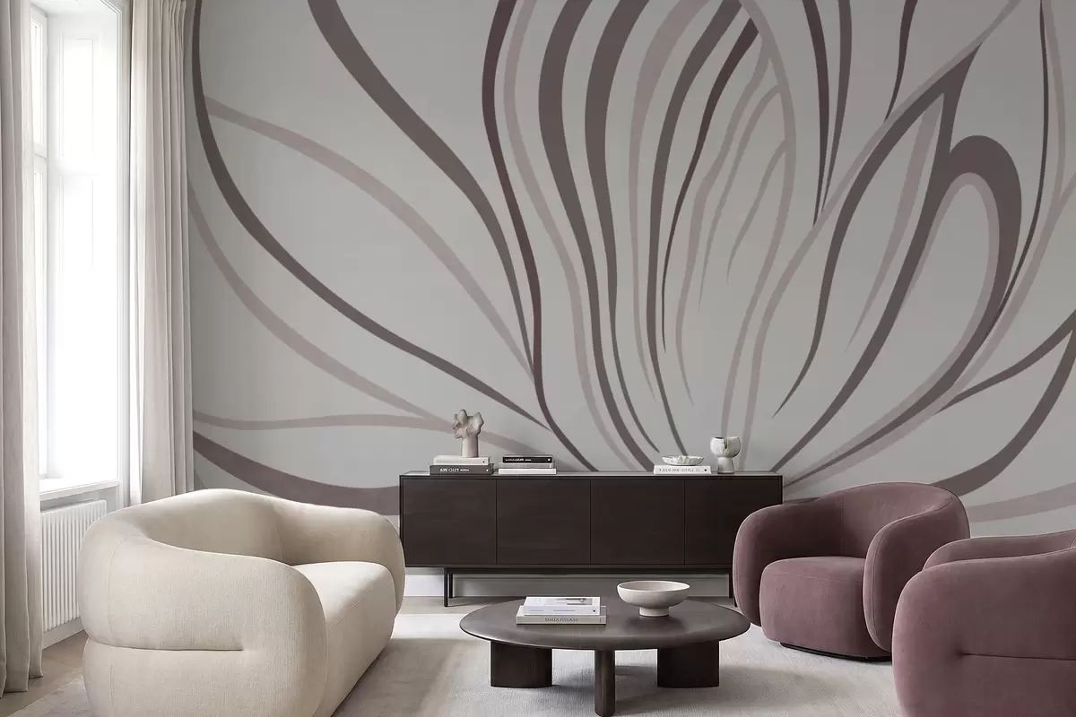 Fototapetes Stilizēts zieds ar maigām līnijām rozā un smilškrāsas toņos Nr. w05392v1