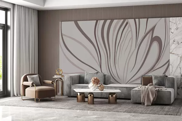 Fototapetes Stilizēts zieds ar maigām līnijām rozā un smilškrāsas toņos Nr. w05392v1