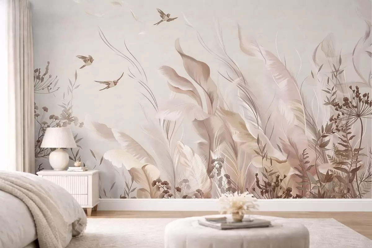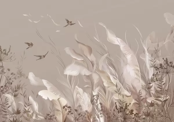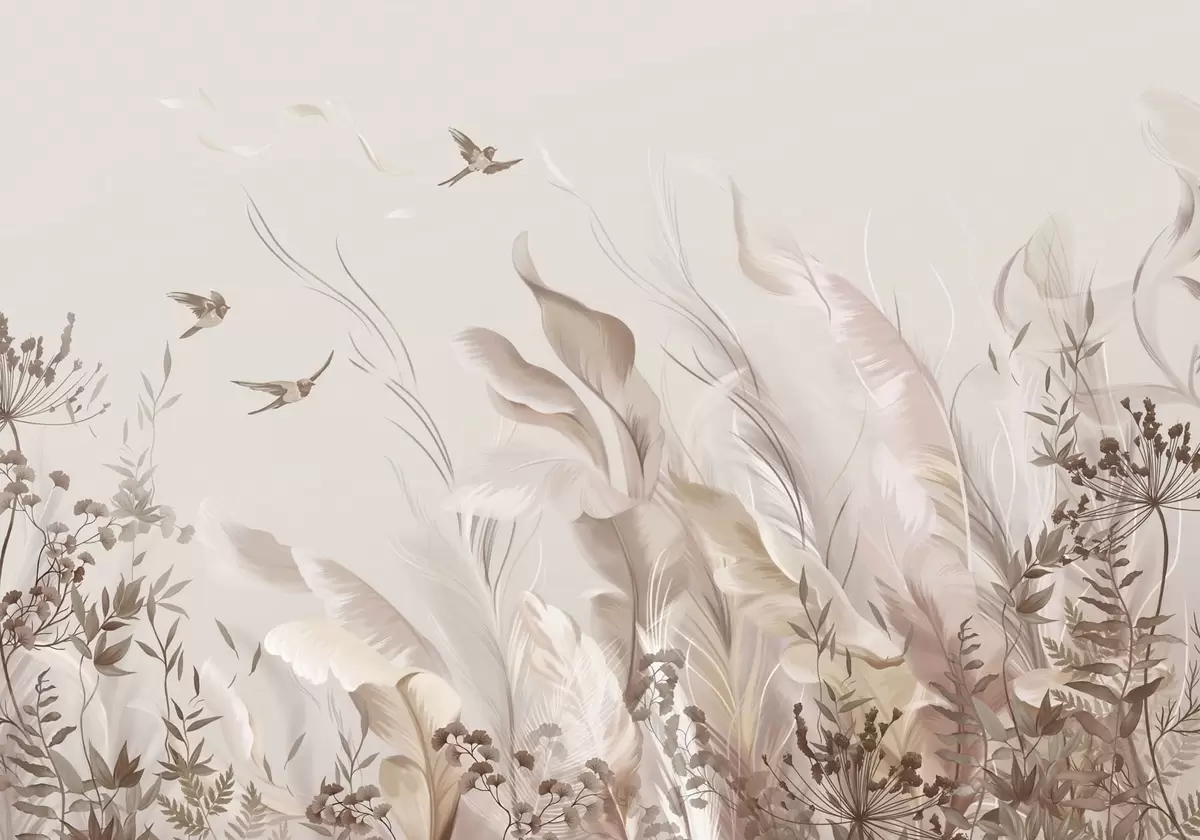 Fototapetes Mīkstas spalvas, zāle un putni gaišos toņos Nr. w05395