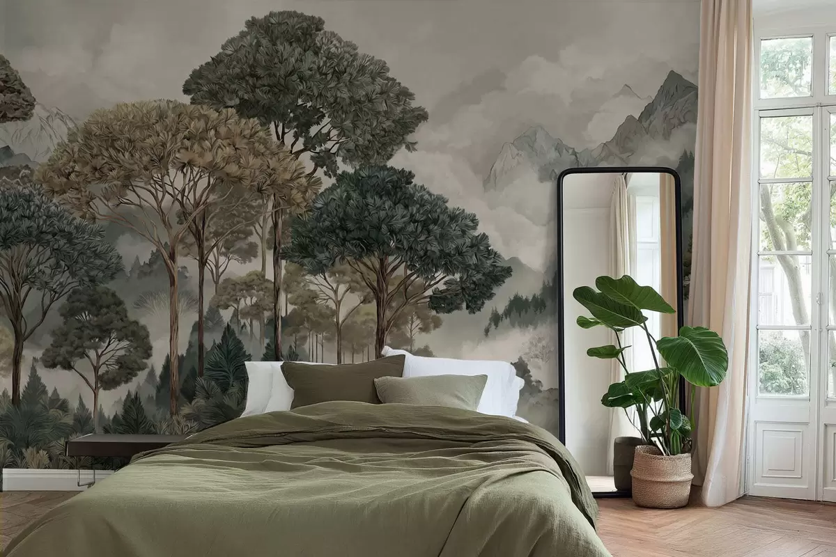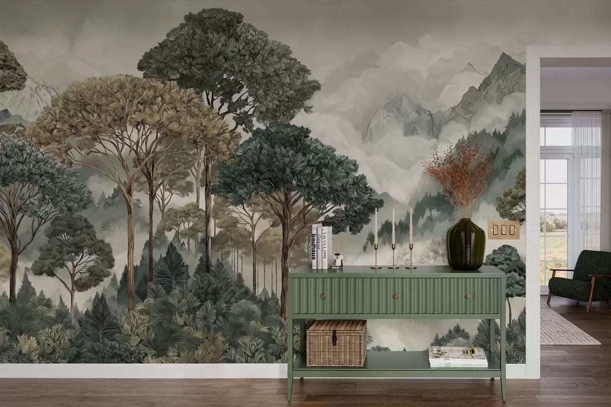 Fototapetes Kalnu ainava ar mežu maigās krāsās Nr. w05410v1