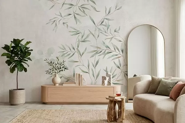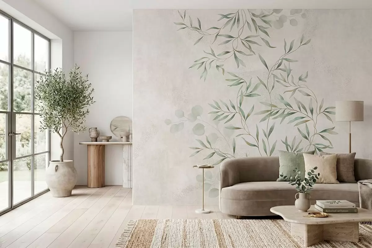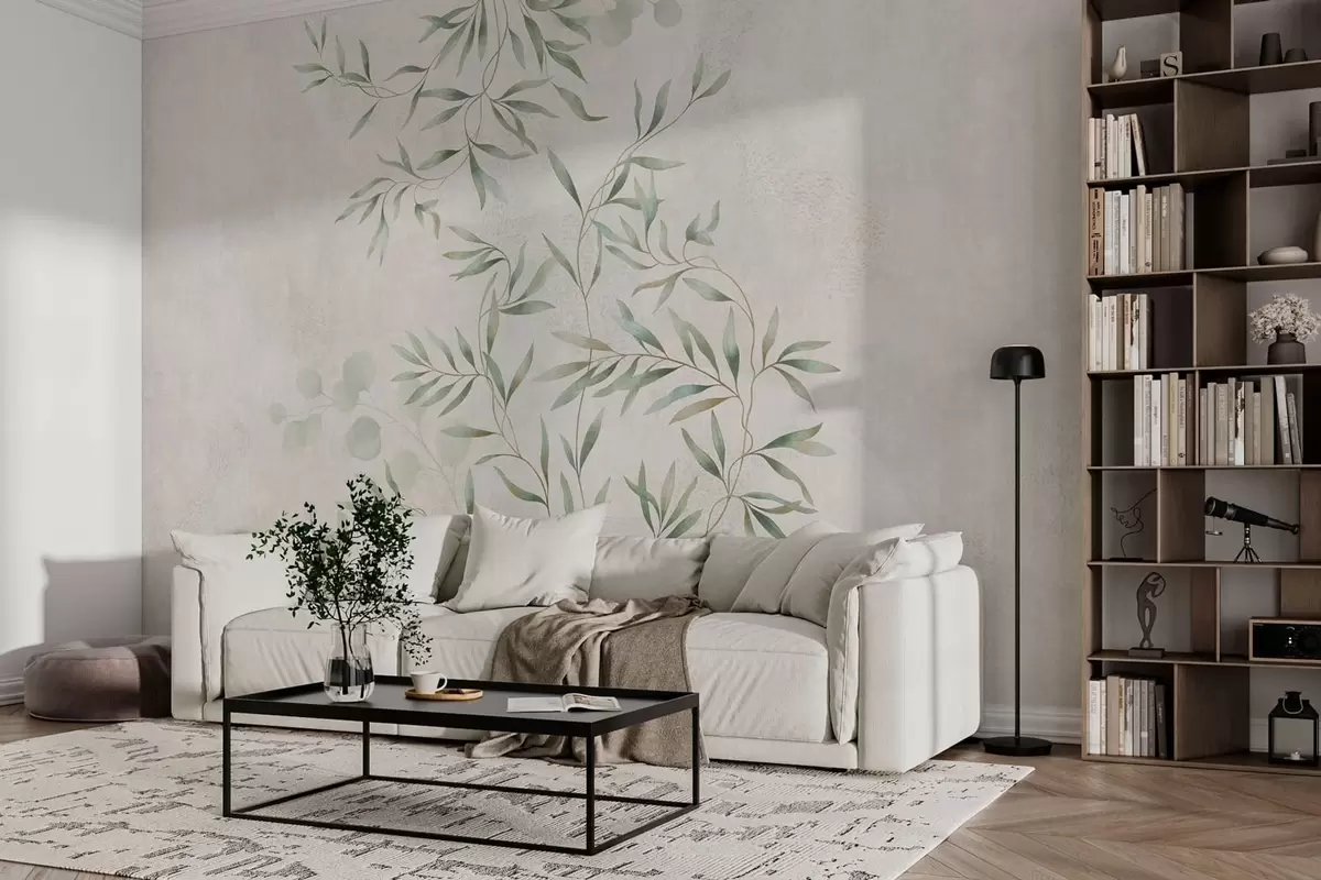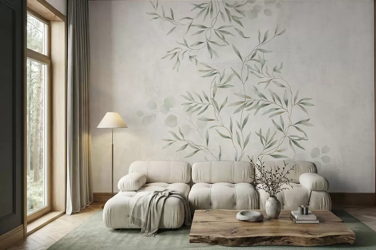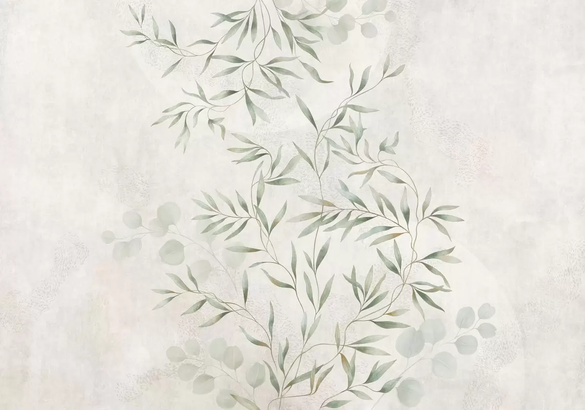Fototapetes Maigs augu motīvs ar smalkām zariņām uz gaiša fona Nr. w05424