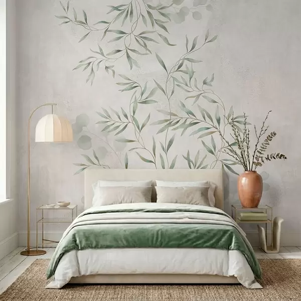 Fototapetes Maigs augu motīvs ar smalkām zariņām uz gaiša fona Nr. w05424
