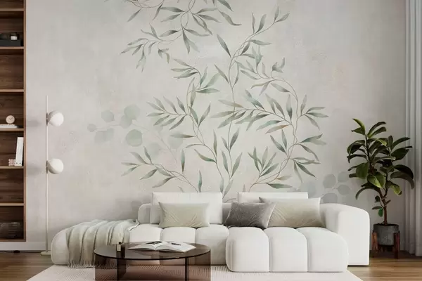 Fototapetes Maigs augu motīvs ar smalkām zariņām uz gaiša fona Nr. w05424