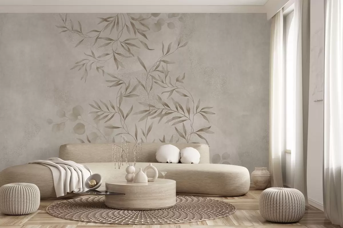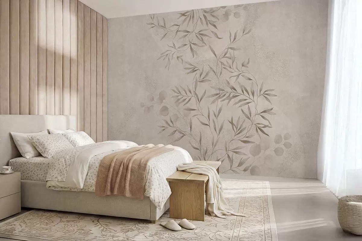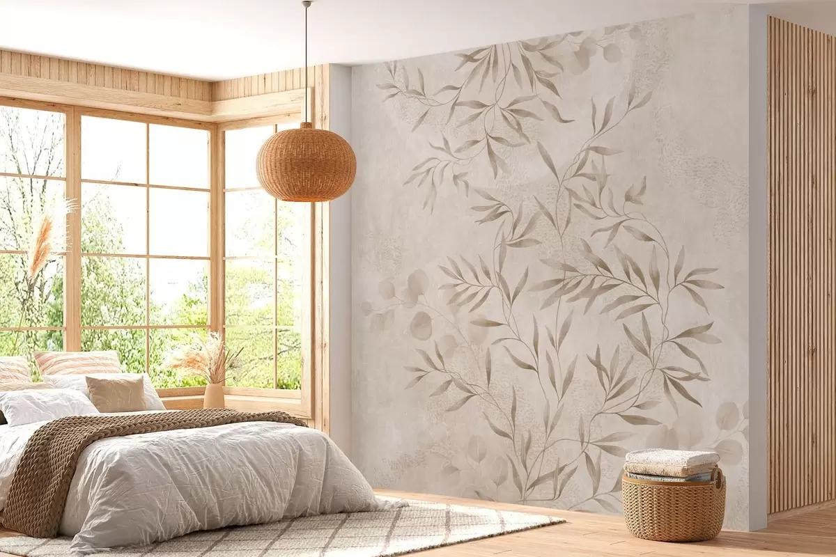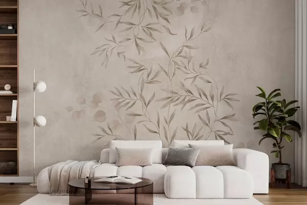 Fototapetes Botānisks raksts smilškrāsas un brūnos toņos Nr. w05424v2