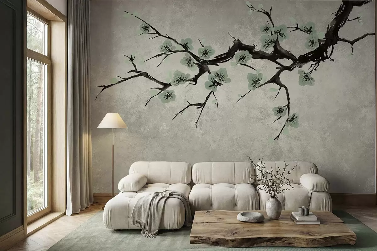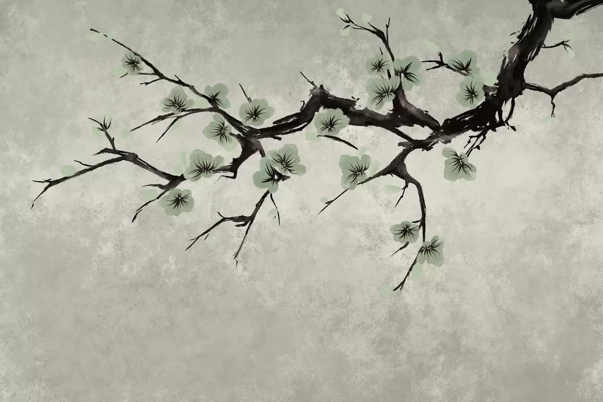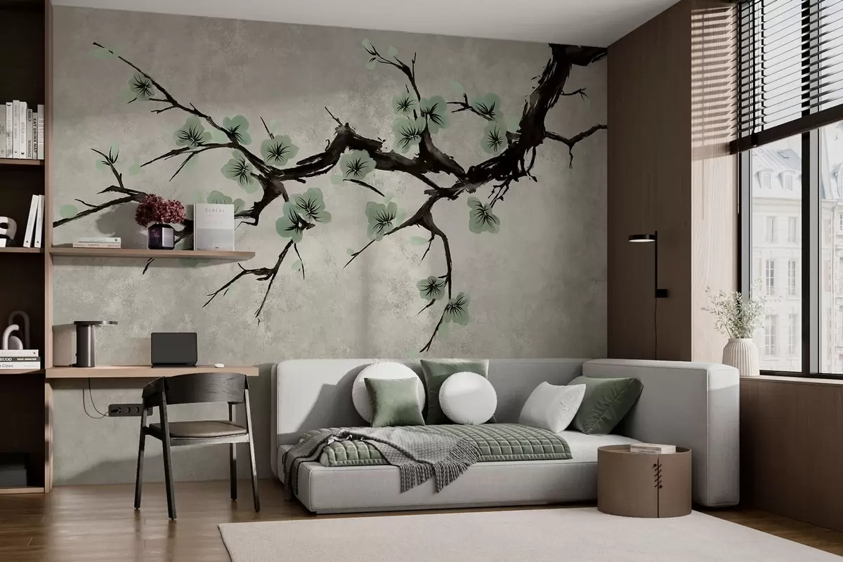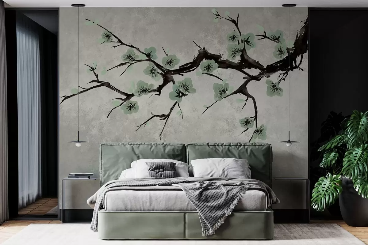 Fototapetes Zars ar zaļiem ziediem mierīgos toņos Nr. w05425v2