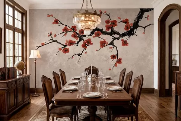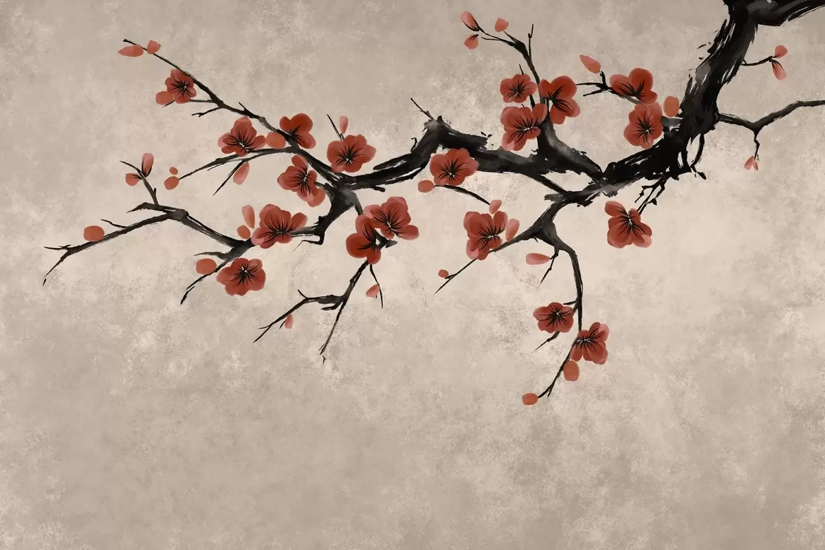 Fototapetes Ziedošs zariņš austrumu stilā uz smilškrāsas fona Nr. w05425v4