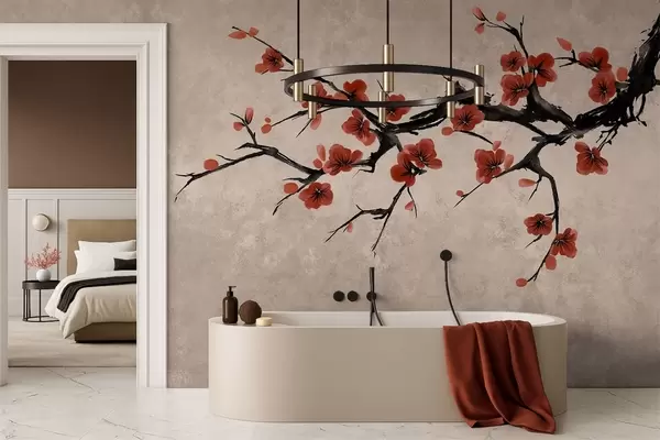 Fototapetes Ziedošs zariņš austrumu stilā uz smilškrāsas fona Nr. w05425v4
