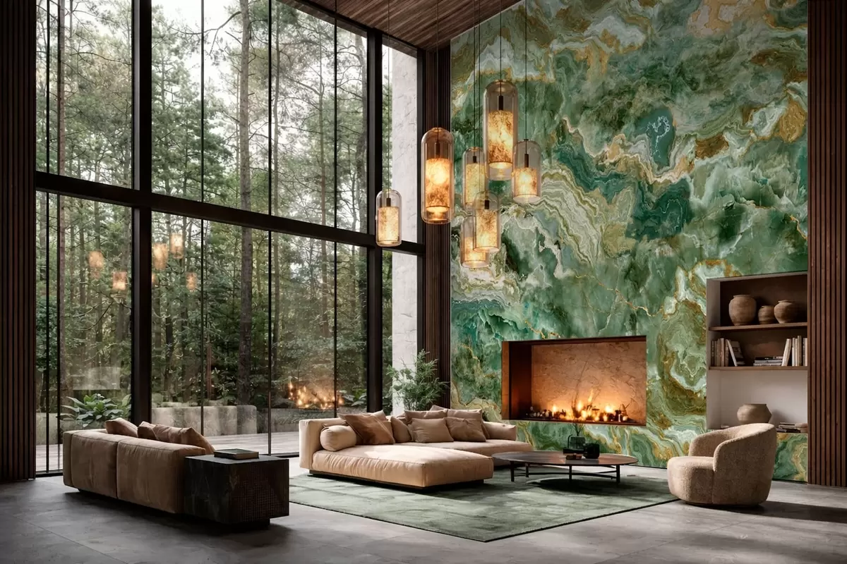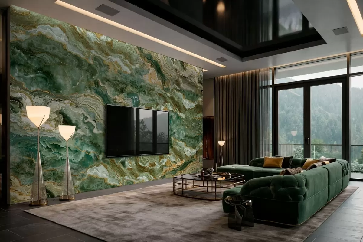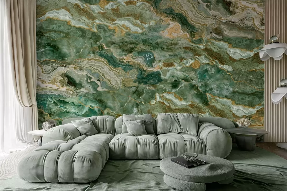 Fototapetes Zaļā oniksa tekstūra ar plūstošām, slāņveida dzīsām Nr. w05429