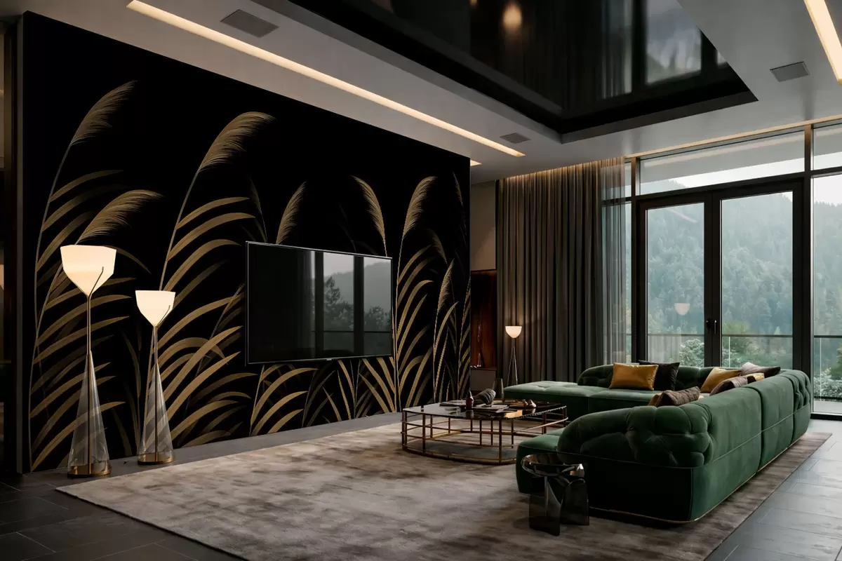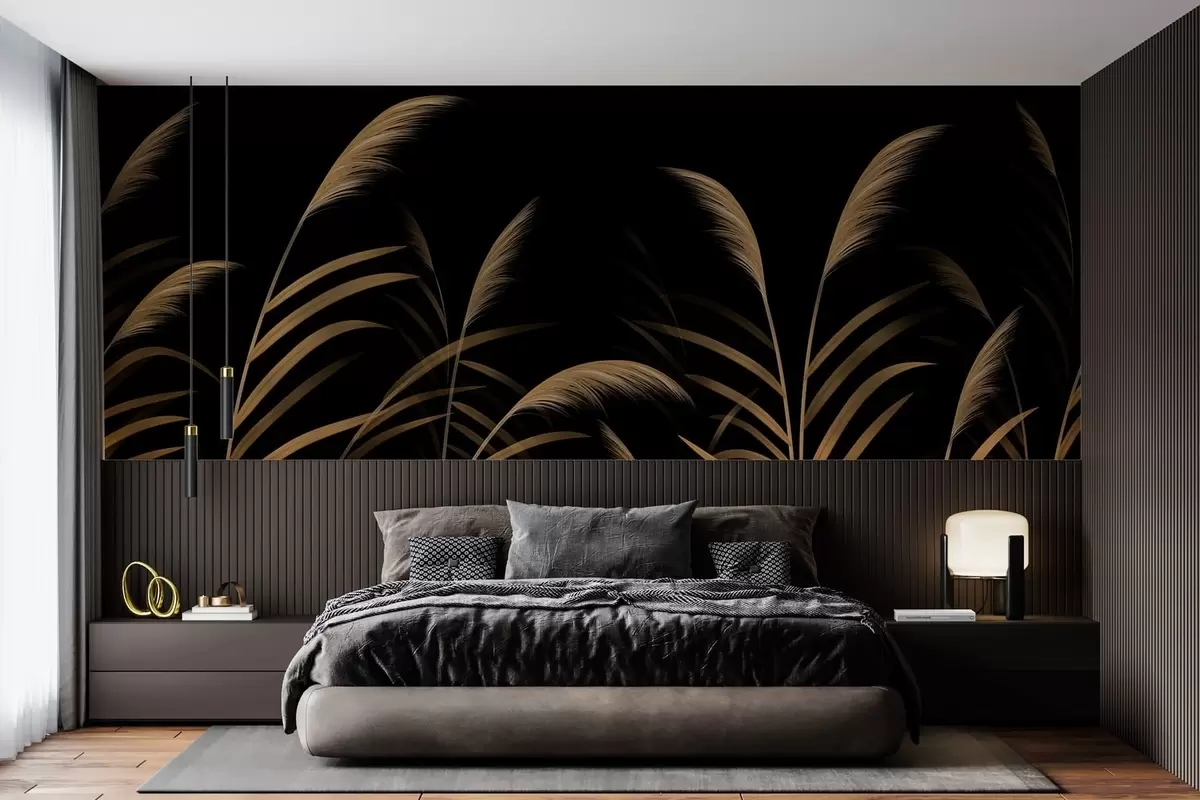Fototapetes Minimālisma stila zāles uz tumša fona ar lielu kontrastu Nr. w05432v3