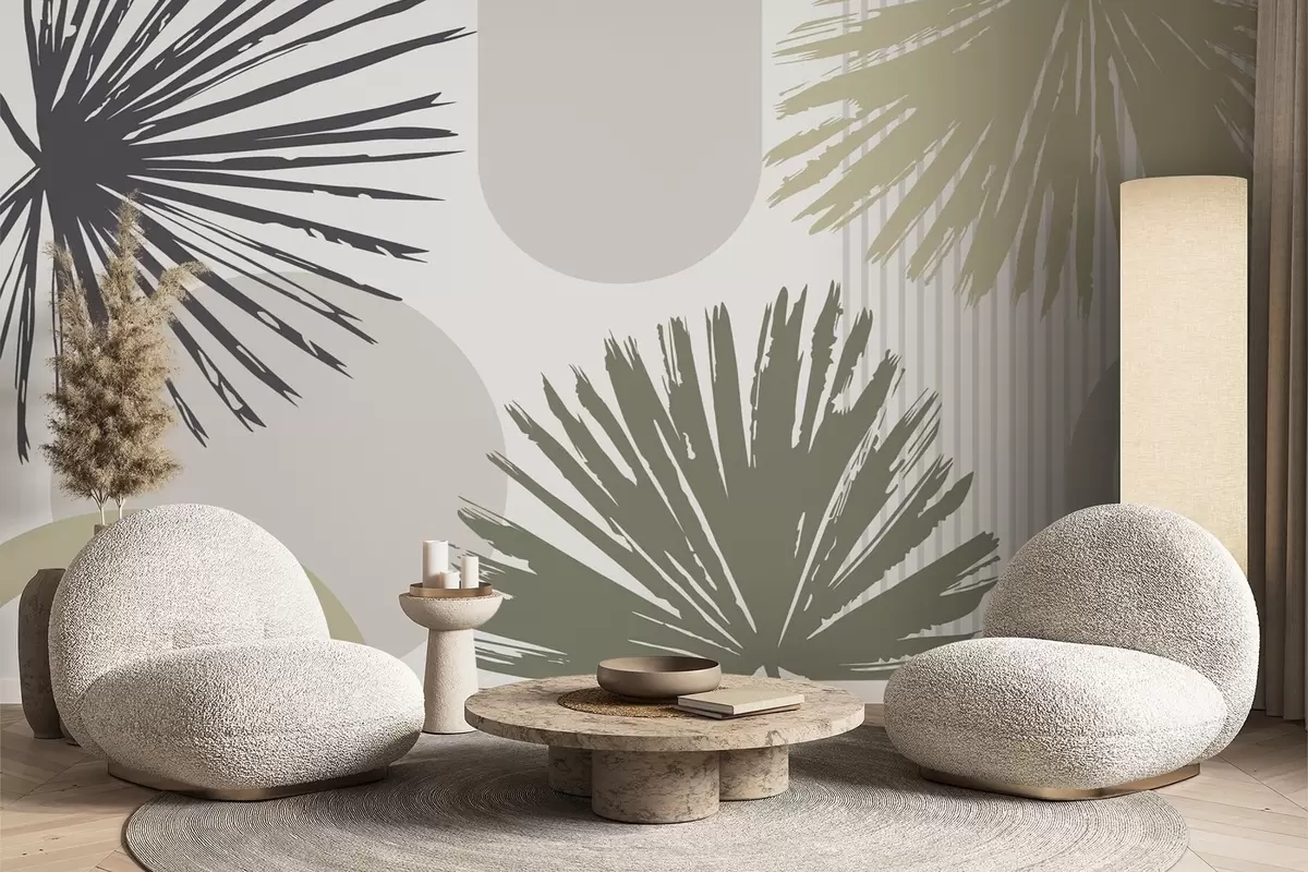 Fototapetes Abstrakcija ar augu un ģeometriskām siluetām Nr. w05505v2