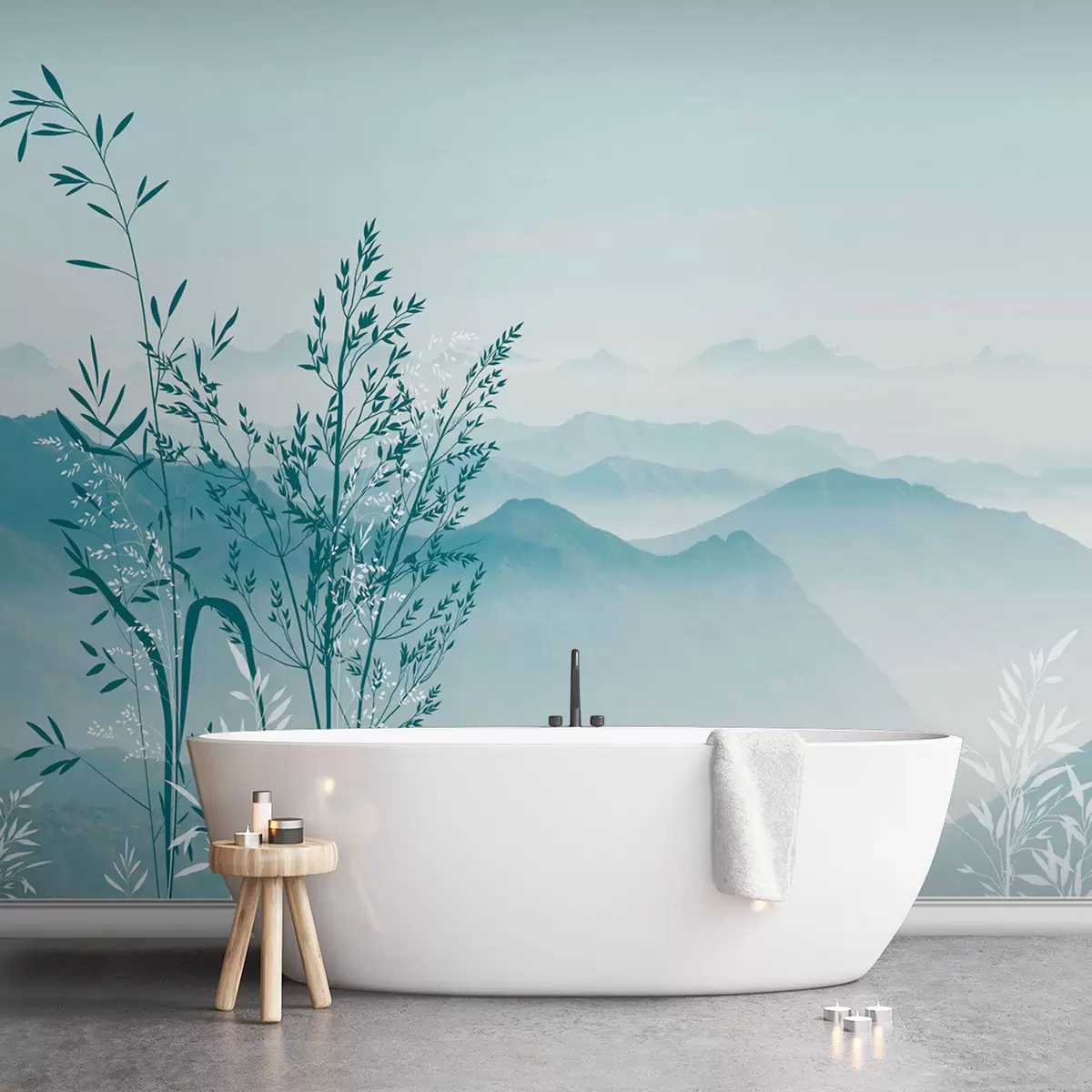 Fototapetes Skats uz kalniem ar augiem un ziediem Nr. w07910