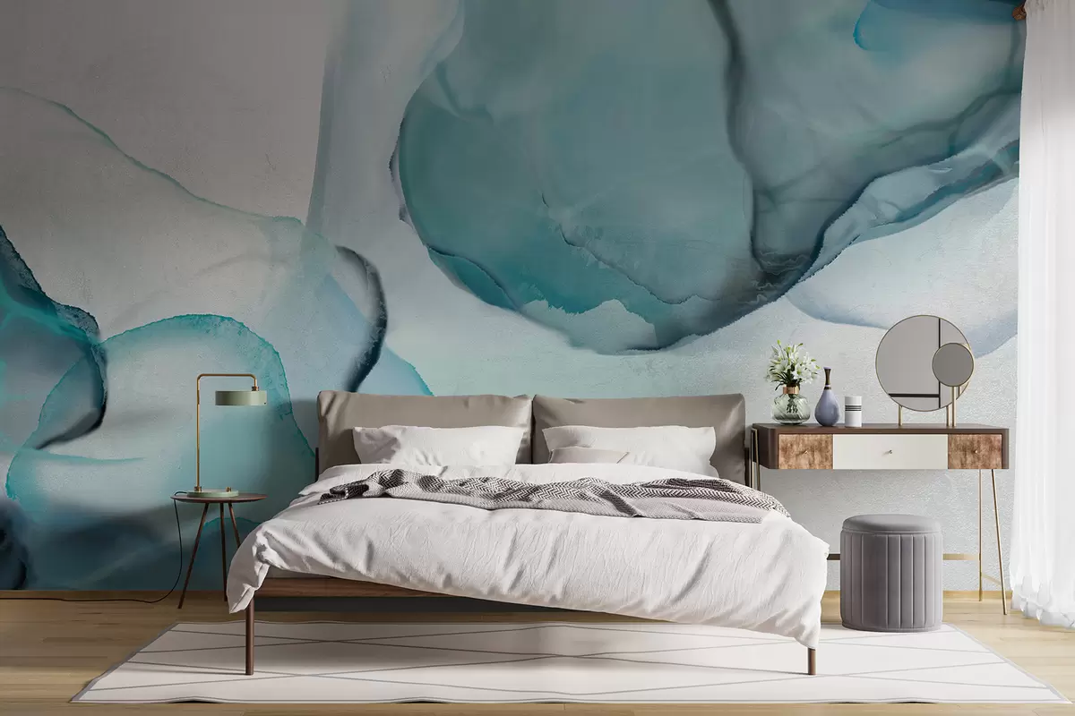 Fototapetes Abstrakta zilā un baltā šķidrā māksla, kas atgādina plūstošu ūdeni un tinti Nr. w07927