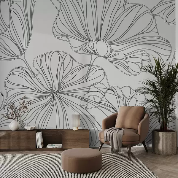 Fototapetes Lieli lineāri ziedi, gaiši bēšs fons Nr. w07997v1