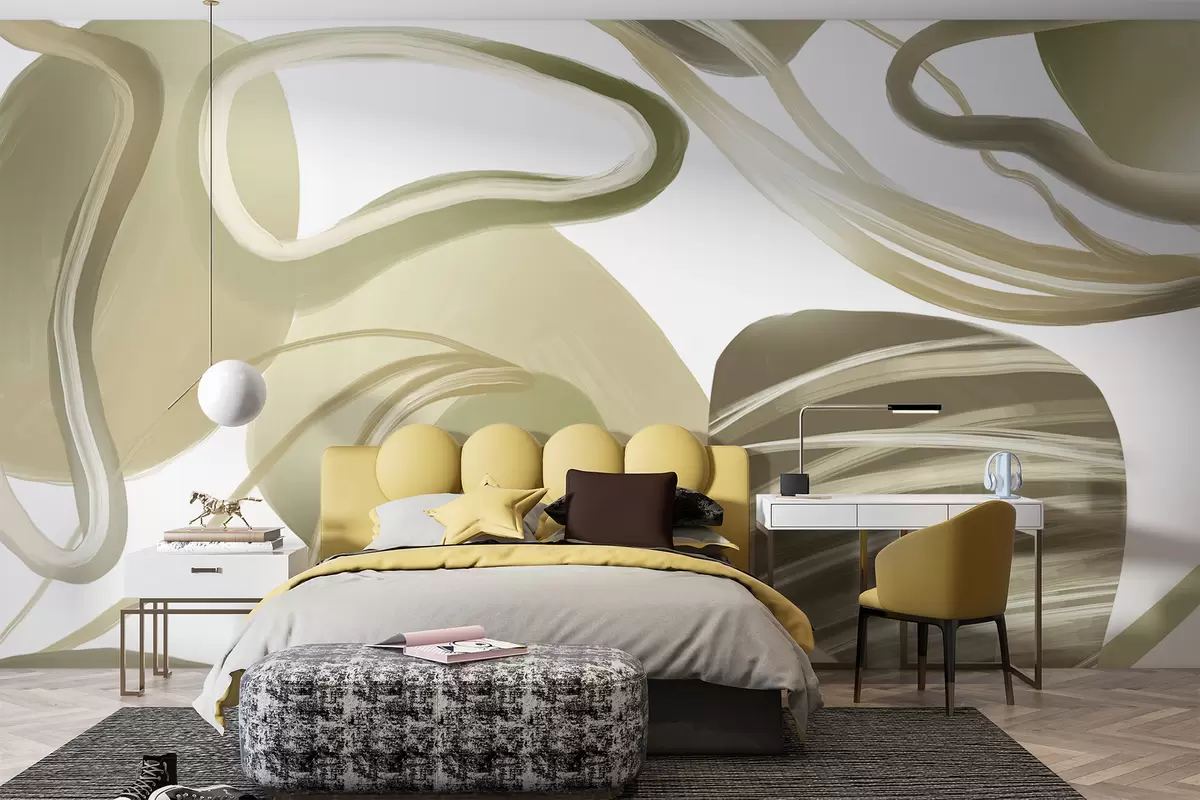 Fototapetes Abstraktas virpuļojošas formas un līknes smilškrāsas toņos, kas veido dinamisku un plūstošu kompozīciju Nr. w08279