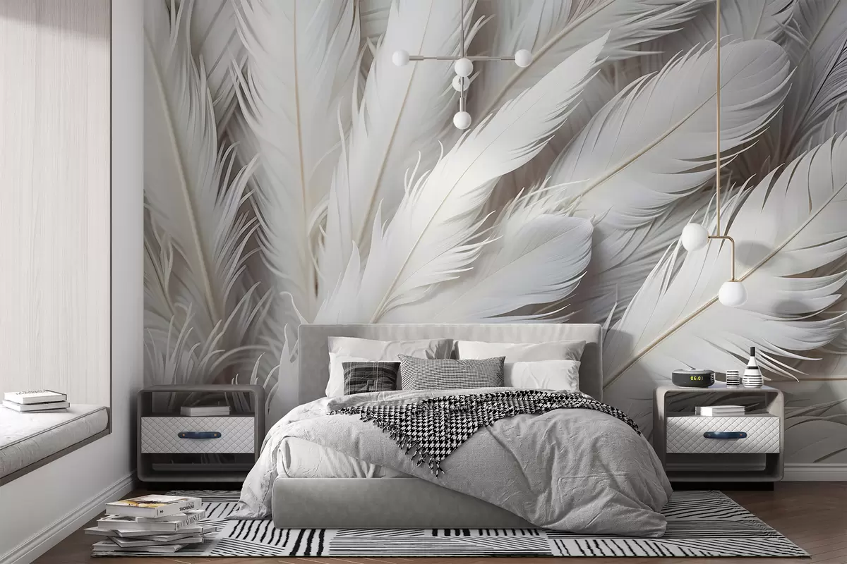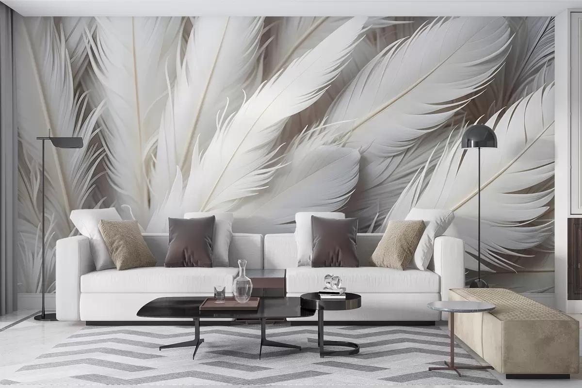 Fototapetes Maigas, pūkainas baltas spalvas ar maigu, plūksnainu tekstūru uz gaiša fona Nr. w08319