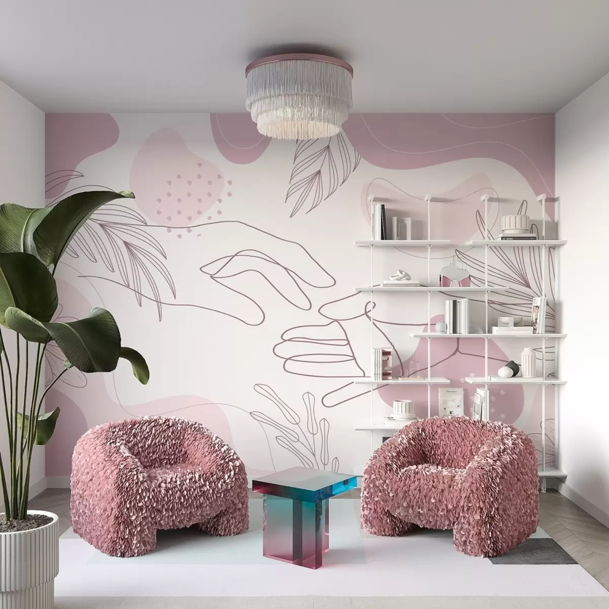 Fototapetes Vektors, lineāras rokas, plankumi, rozā krāsa w08353v1
