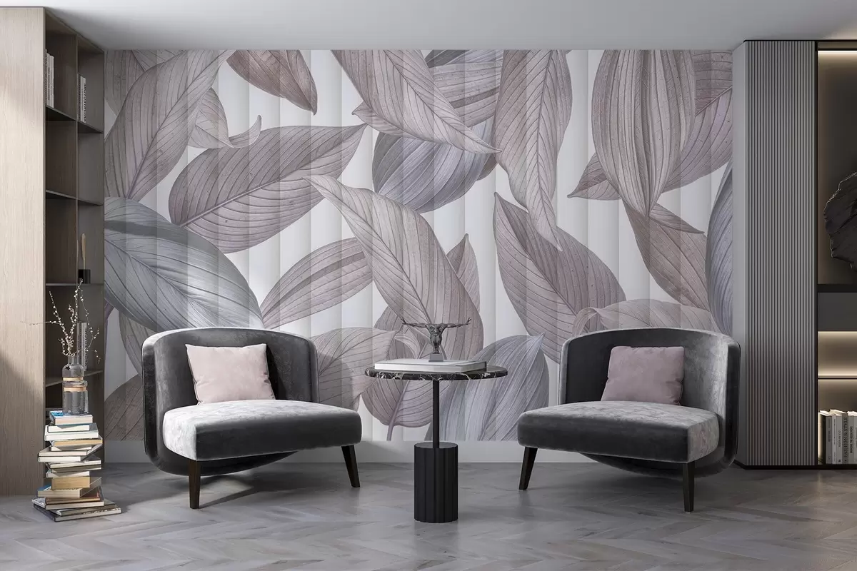 Fototapetes Abstraktas detalizētas lapas zilos, pelēkos un pasteļrozā toņos uz gaiša fona Nr. w08388v1