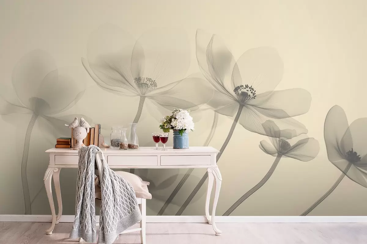 Fototapetes Gaisīgas savvaļas puķes smilškrāsas tonī Nr. w08490