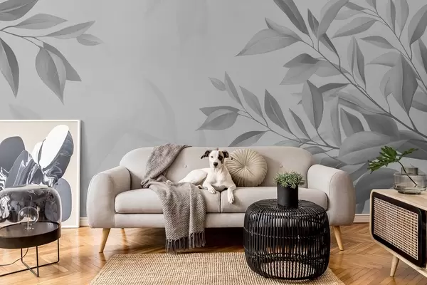 Fototapetes Pelēki zari ar lapām uz pelēka fona Nr. w08499v3