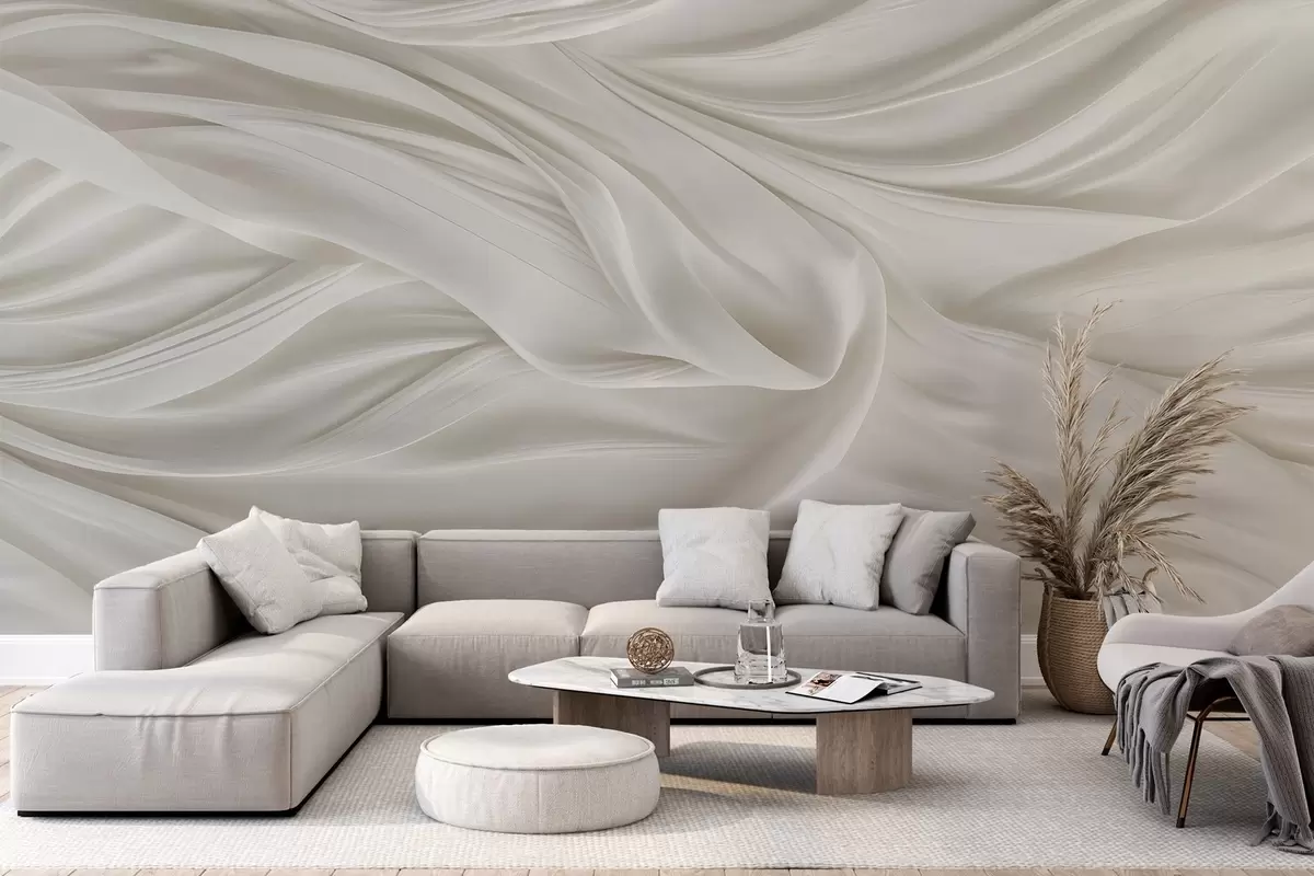 Fototapetes Mūsdienīga apdruka ar gluda, plūstoša balta auduma imitāciju ar maigām, plūstošām krokām un krokām Nr. w08537