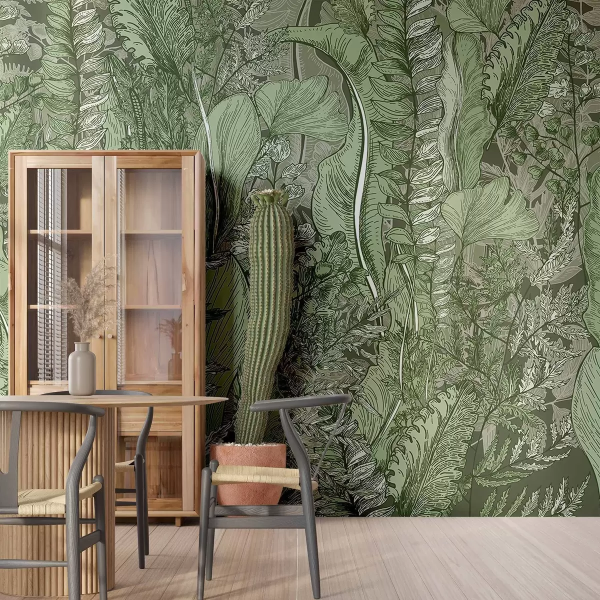 Fototapetes Sulīgs, zaļš mežs ar dažāda veida papardēm, lapām un zaļās krāsas lapotni Nr. w08579